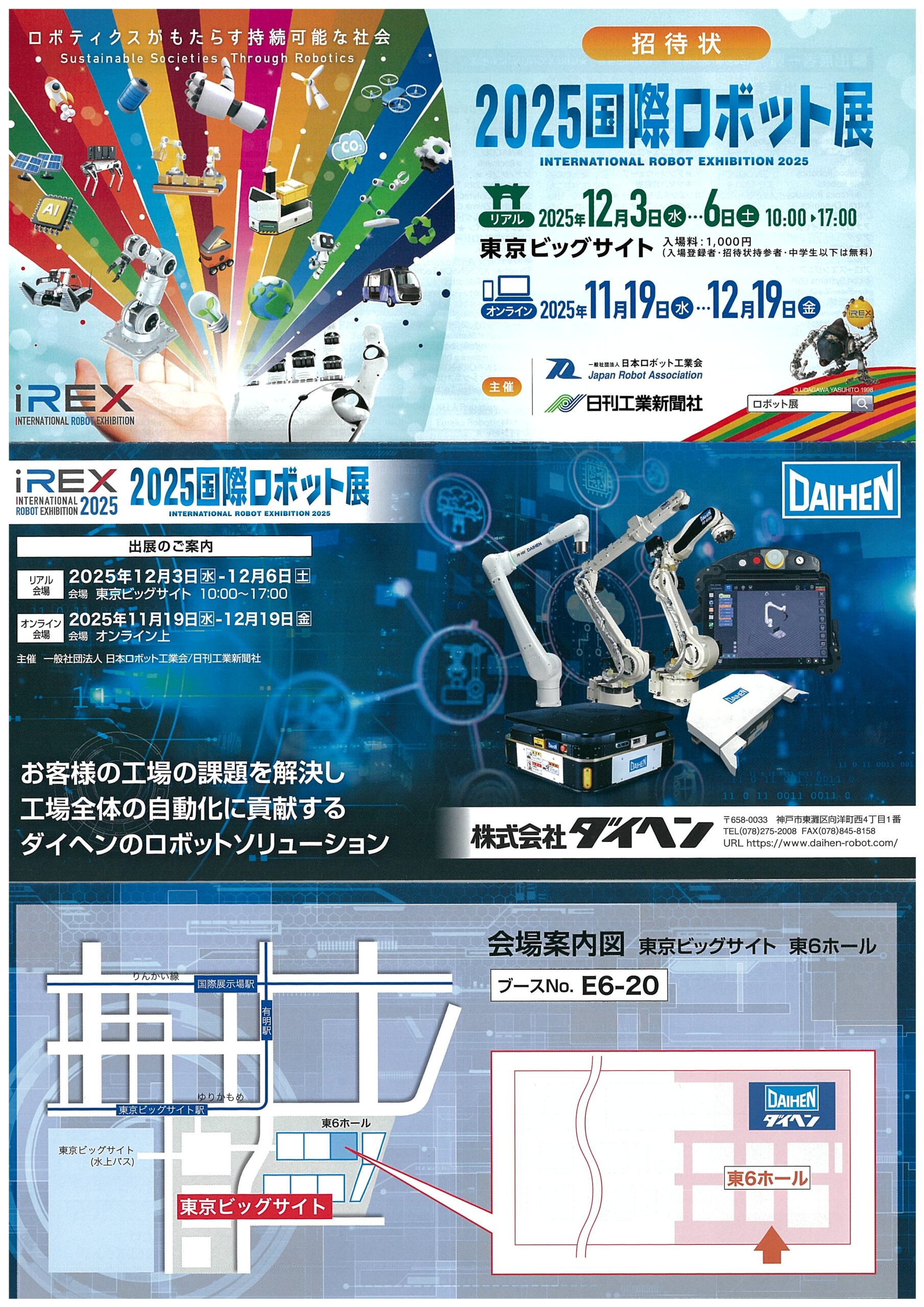 Topicsお知らせ 2025.11.15 「2025国際ロボット展」のご案内 12/3(月)~6(土)東京ビックサイトにて2025年国際ロボット展が開催されます。 ご興味のある方はお問い合わせください。 前の記事へ 一覧へ 次の記事へ
